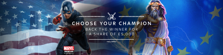 It’s America vs Europe in this exciting promotion where you’ll have the choice to back either USA or Europe to win the Ryder Cup. However it has a twist. The Avengers will be representing USA and Age of the Gods will be repping Europe. Firstly opt in to take part in the promotion here https://www.skycasino.com/promotion/39501/ryder-cup-choose-your-champion . Then play The Avengers slot game to back USA or play the Age of the Gods slot game to back Europe. Interesting promotion to say the least!